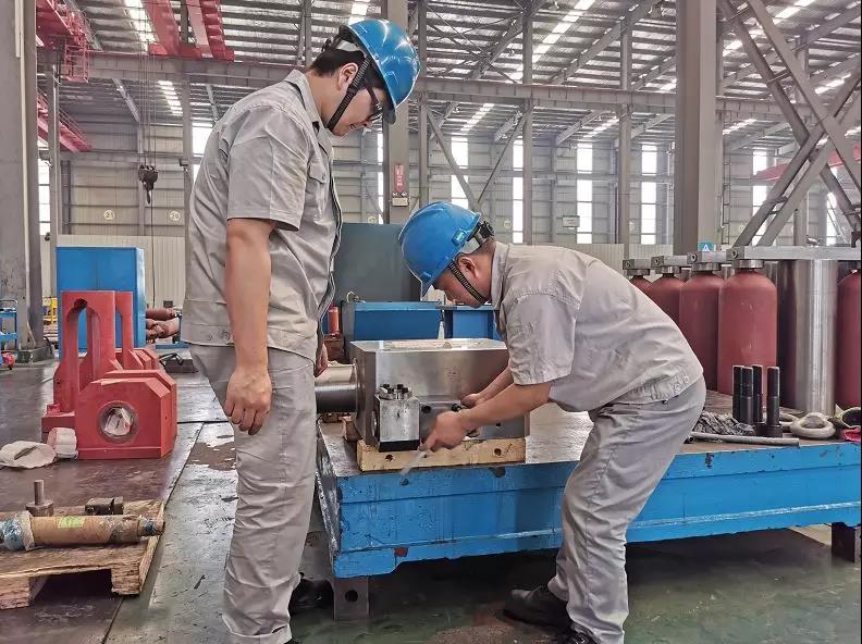 逐漸地,公司開始讓施永祥師傅兼任設備裝配組的負責人,后來施師傅先后參與了一些重大的、國家級的科研攻關項目,包括填補國內(nèi)技術空白的800噸立式擠壓鑄造機(國家火炬計劃項目)、2010年我國最大的4500噸壓鑄機、2011年國家科技重大專項 - 3500噸精密臥式實時控制壓鑄機及成套設備項目、2012年的國家智能制造裝備發(fā)展專項 - 高效智能壓鑄島項目以及2019年國家科技重大專項 - 3500噸高效智能擠壓成形裝備及工藝示范應用項目等等。這些項目,尤其是擠壓鑄造的項目,開始時國內(nèi)沒有現(xiàn)成的經(jīng)驗可以參考,作為設備裝配組負責人,施師傅帶領班組同研發(fā)人員一道,通過自主鉆研和攻關,還是如期、保質(zhì)保量的完成了一個個項目任務,三基鑄裝的裝配水準也得到了國家專家組的充分肯定。