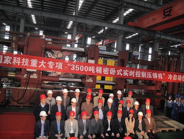 由一汽鑄造有限公司牽頭,蘇州三基鑄造裝備股份有限公司、清華大學(xué)、西安交通大學(xué)、機械科學(xué)研究總院聯(lián)合承擔(dān)的高檔數(shù)控機床與基礎(chǔ)制造裝備科技重大專項“3500噸精密臥式實時控制壓鑄機及成套設(shè)備項目,經(jīng)過各責(zé)任單位近一年緊鑼密鼓的實施,主機制造已經(jīng)完成,標志著項目已經(jīng)取得了階段性成果。為了慶祝取得的階段性成功以及對中期的工作情況進行檢查,于20111119日,在主機的研制基地蘇州三基鑄造裝備股份有限公司舉辦了國家科技重大專項-3500噸精密臥式實時控制壓鑄機冷啟動儀式暨項目中期檢查匯報會活動。
