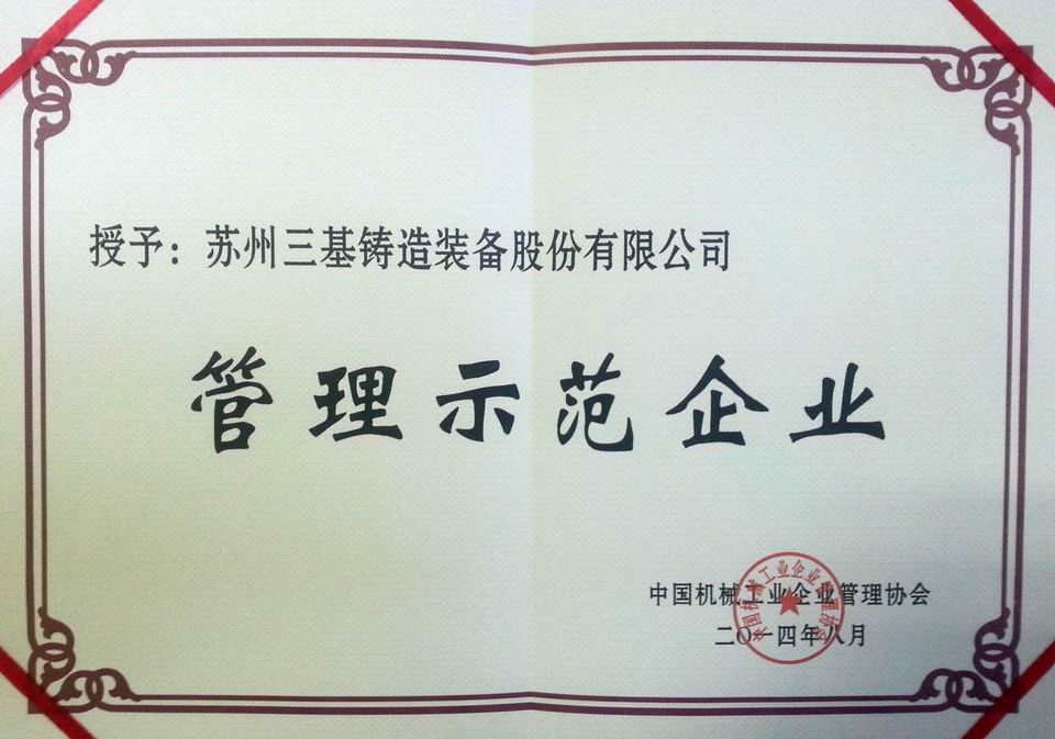 專家組依據(jù)機械工業(yè)”管理進步示范企業(yè)“評定標準,作出如下總體評價:“三基鑄裝”近年來探索出了一條穩(wěn)健發(fā)展的道路,技術研發(fā)與創(chuàng)新處于行業(yè)前列,其管理經(jīng)驗在全國同行業(yè)中有一定示范作用和推廣價值,同意公司作為機械工業(yè):管理進步示范企業(yè)“的候選單位。