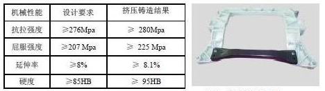 研發(fā)成果:研發(fā)試制的前副車架成品及達到的性能指標如圖3和下表所示。